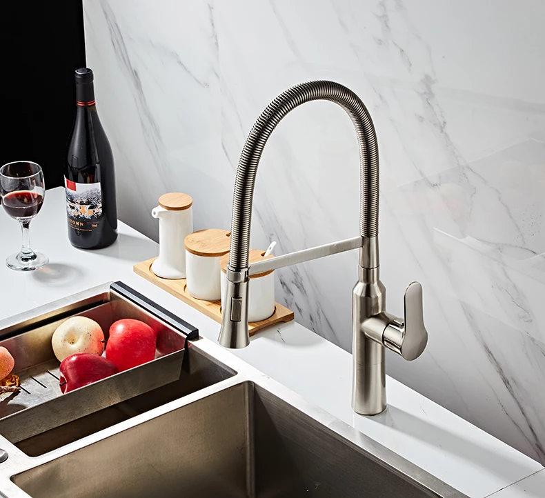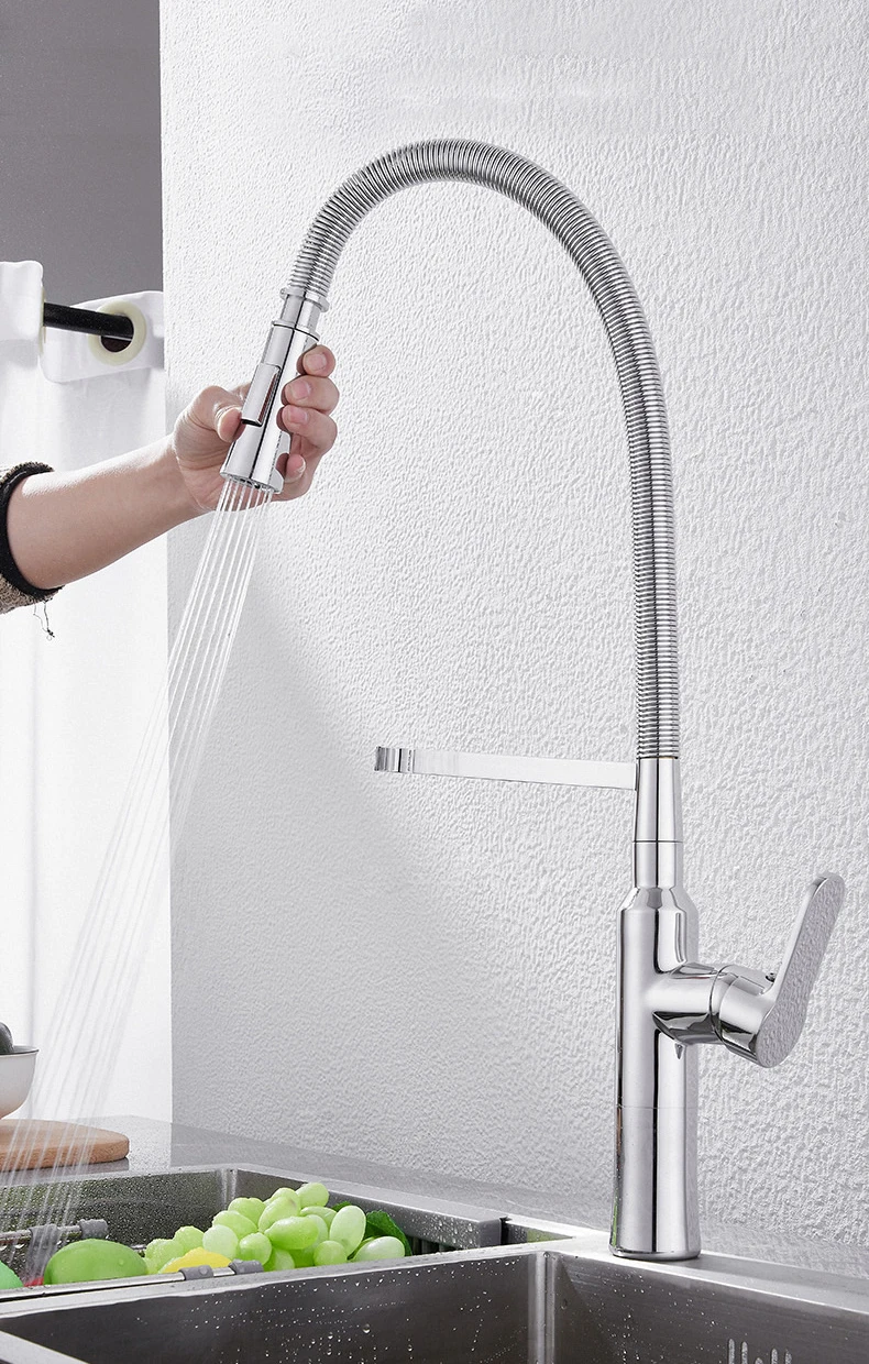 Com um tipo de chuveiro retrátil, esta torneira oferece versatilidade para diversas tarefas na cozinha.