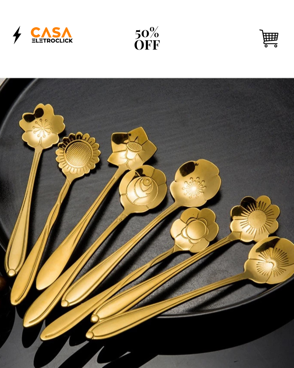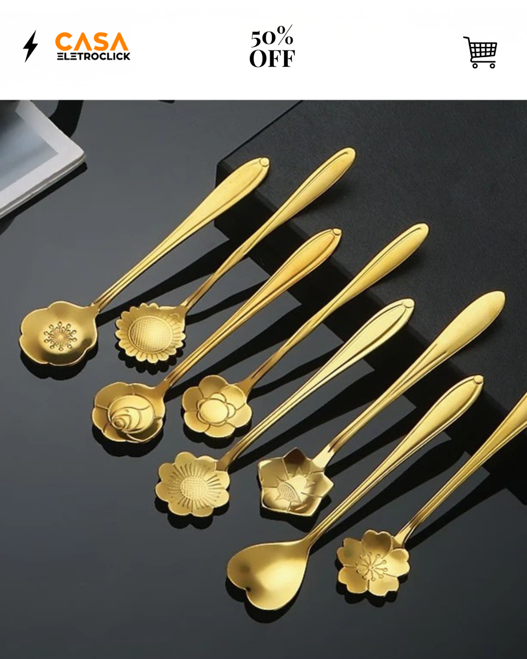Encante-se com o Conjunto de Colheres Designer Eletroclick, onde cada detalhe é uma obra de arte. 🌸