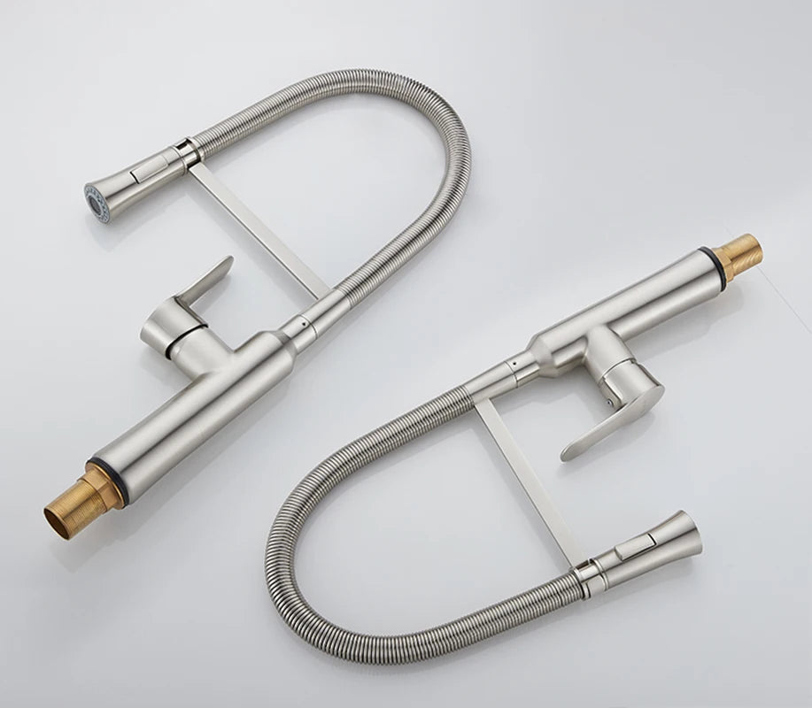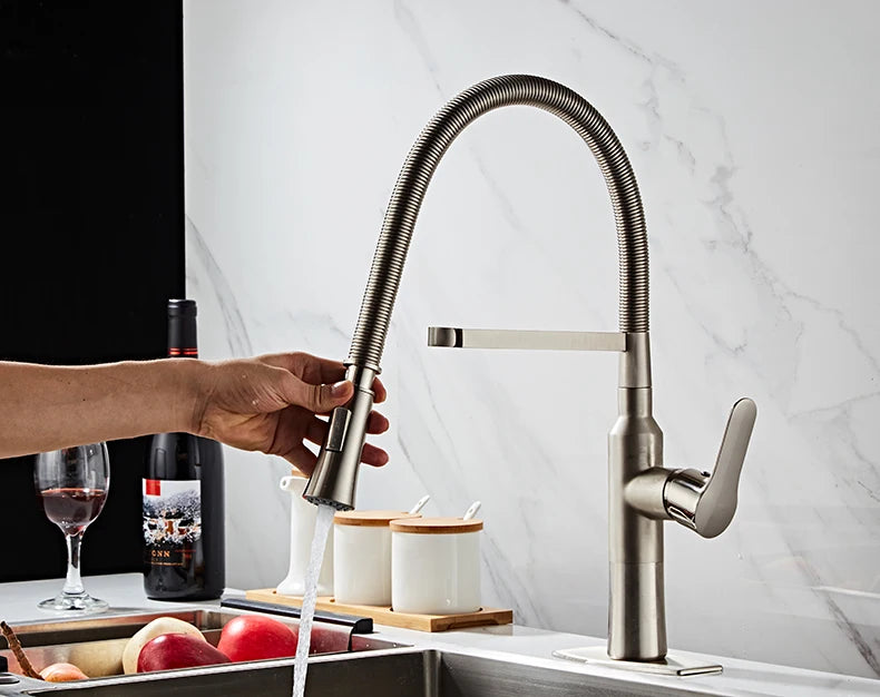 Com um tipo de chuveiro retrátil, esta torneira oferece versatilidade para diversas tarefas na cozinha.